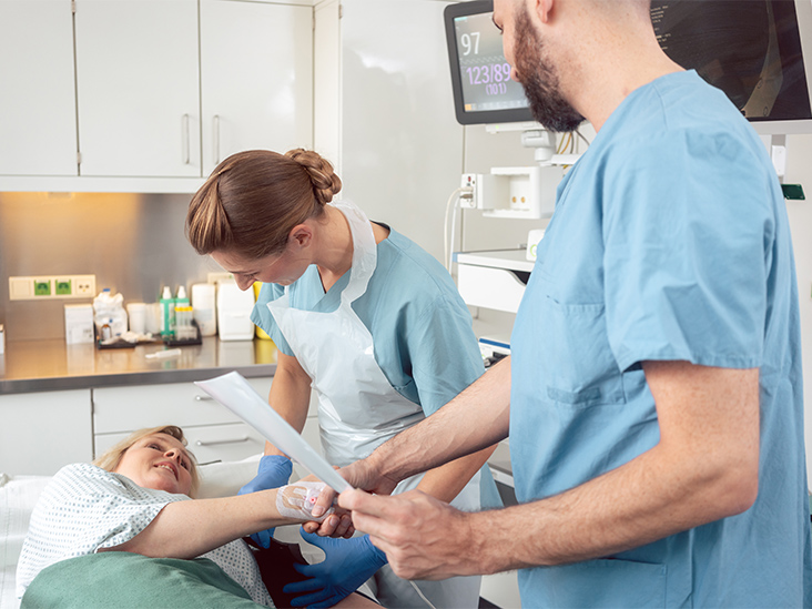 Once you get to the hospital or clinic, you will be asked to change into a hospital gown. You will then be sedated or be put under anesthesia to minimize the discomfort during the procedure. You will then be asked to lie on your side for most of the procedure.